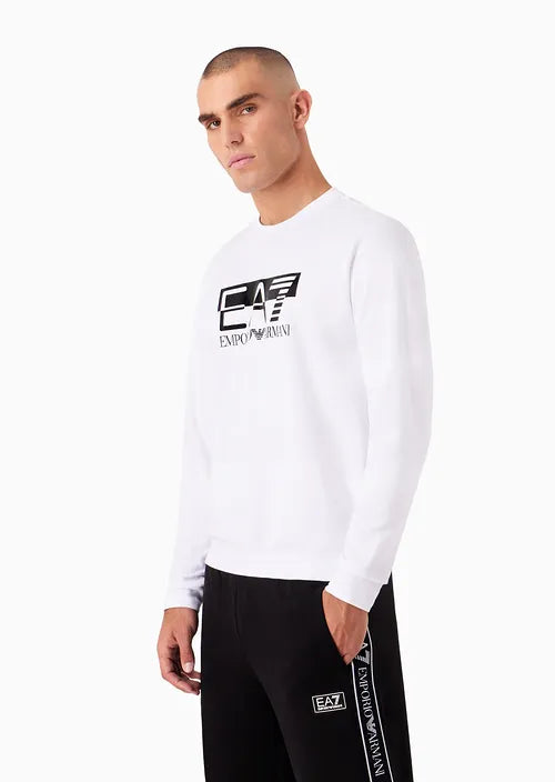 EA7 Share Felpa girocollo Visibility in cotone Bianca