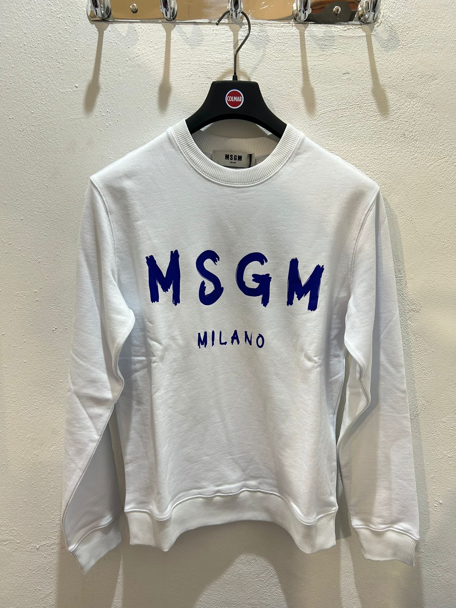 Felpa MSGM, realizzata in cotone, manica lunga e a girocollo . Dettaglio della stampa frontale del logo in rilievo con lurex. Colore a campione.
