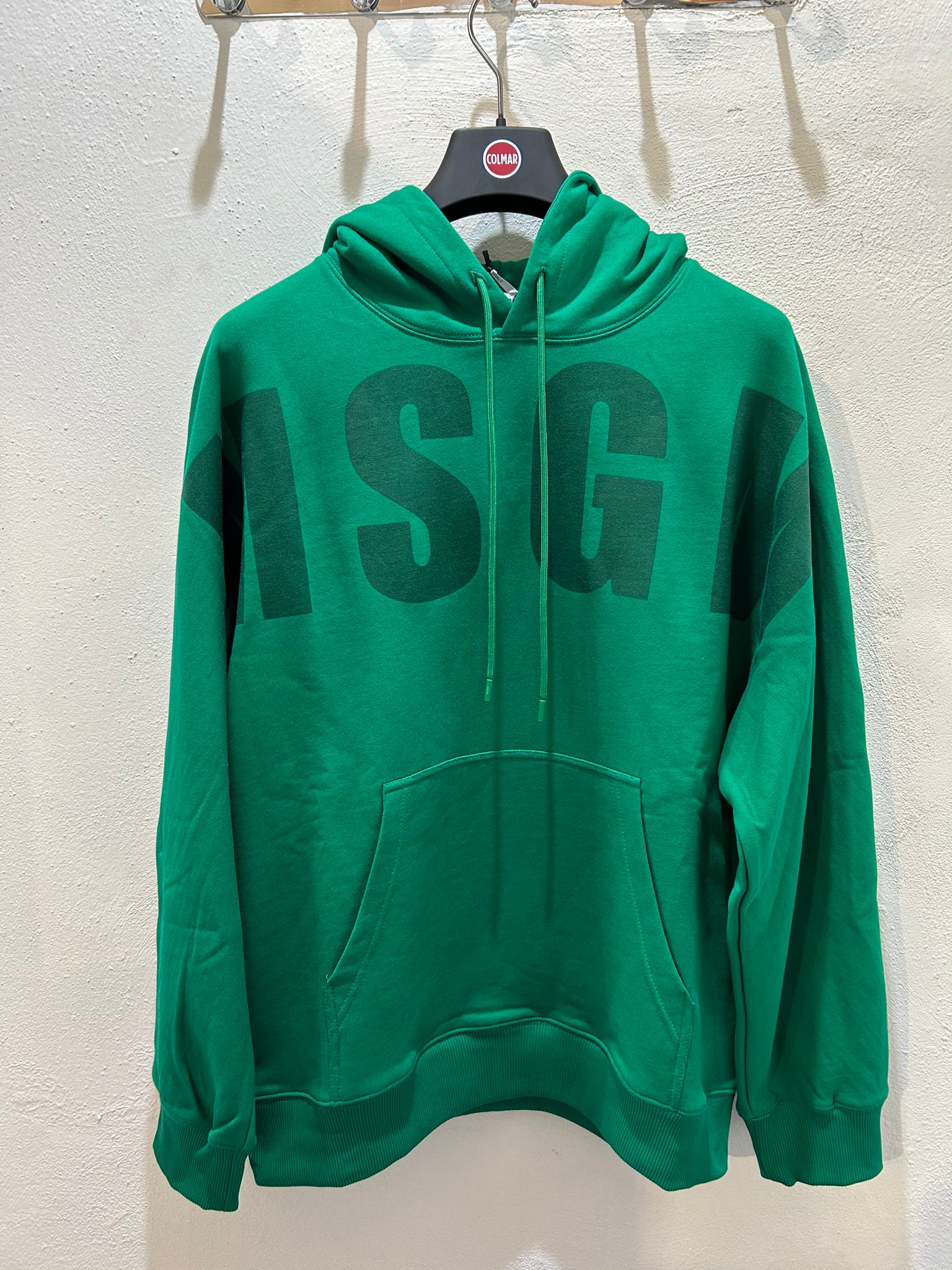Felpa MSGM, realizzata in cotone, manica lunga e a girocollo con cappuccio. Dettaglio della stampa frontale del logo in rilievo con lurex. Colore a campione.