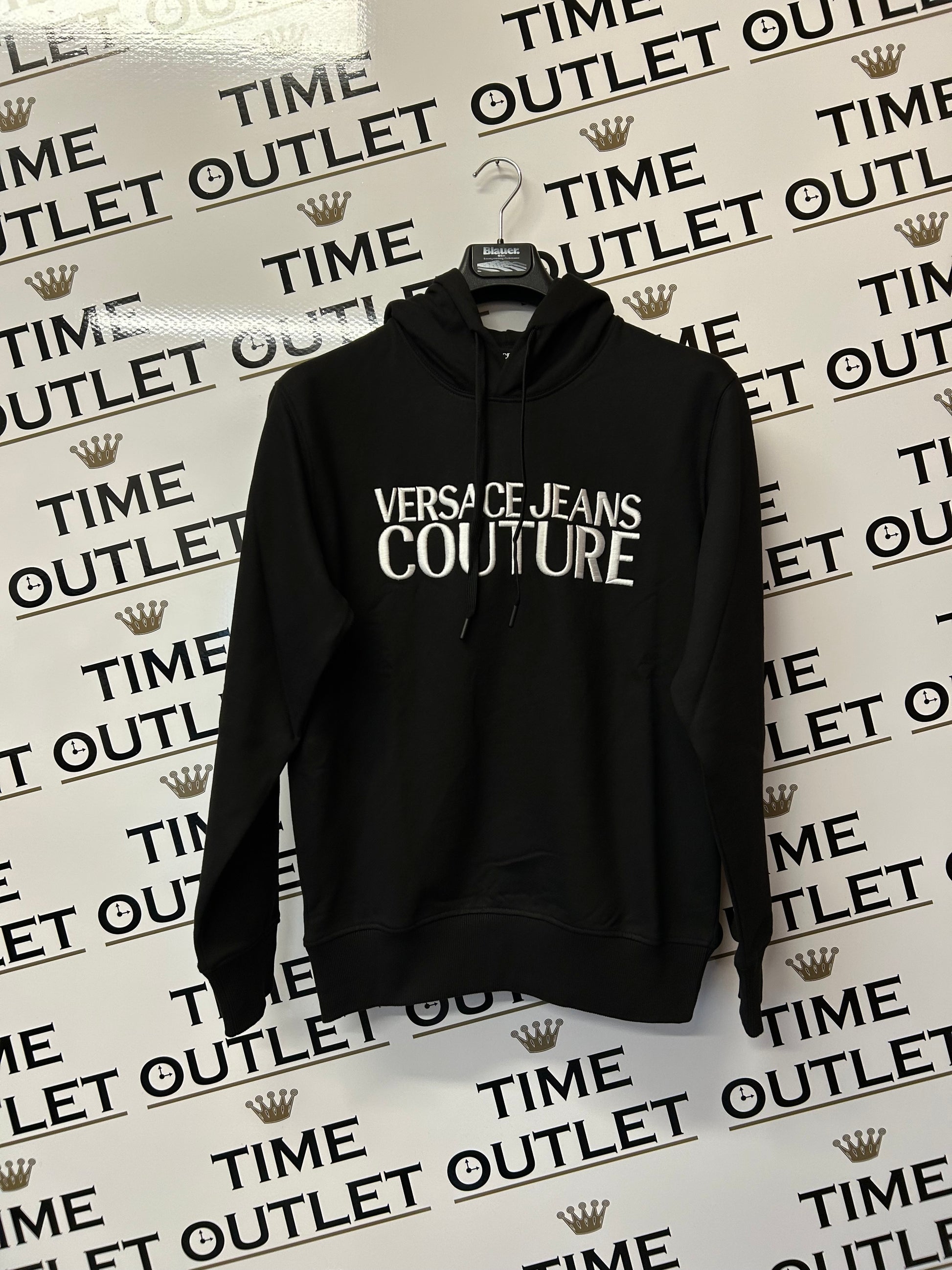 Felpa Versace Jeans Couture in cotone Nero. Logo frontale argento. Girocollo a costine. Manica lunga. Polsi e fondo a costine. Interno garzato. Vestibilità regolare.