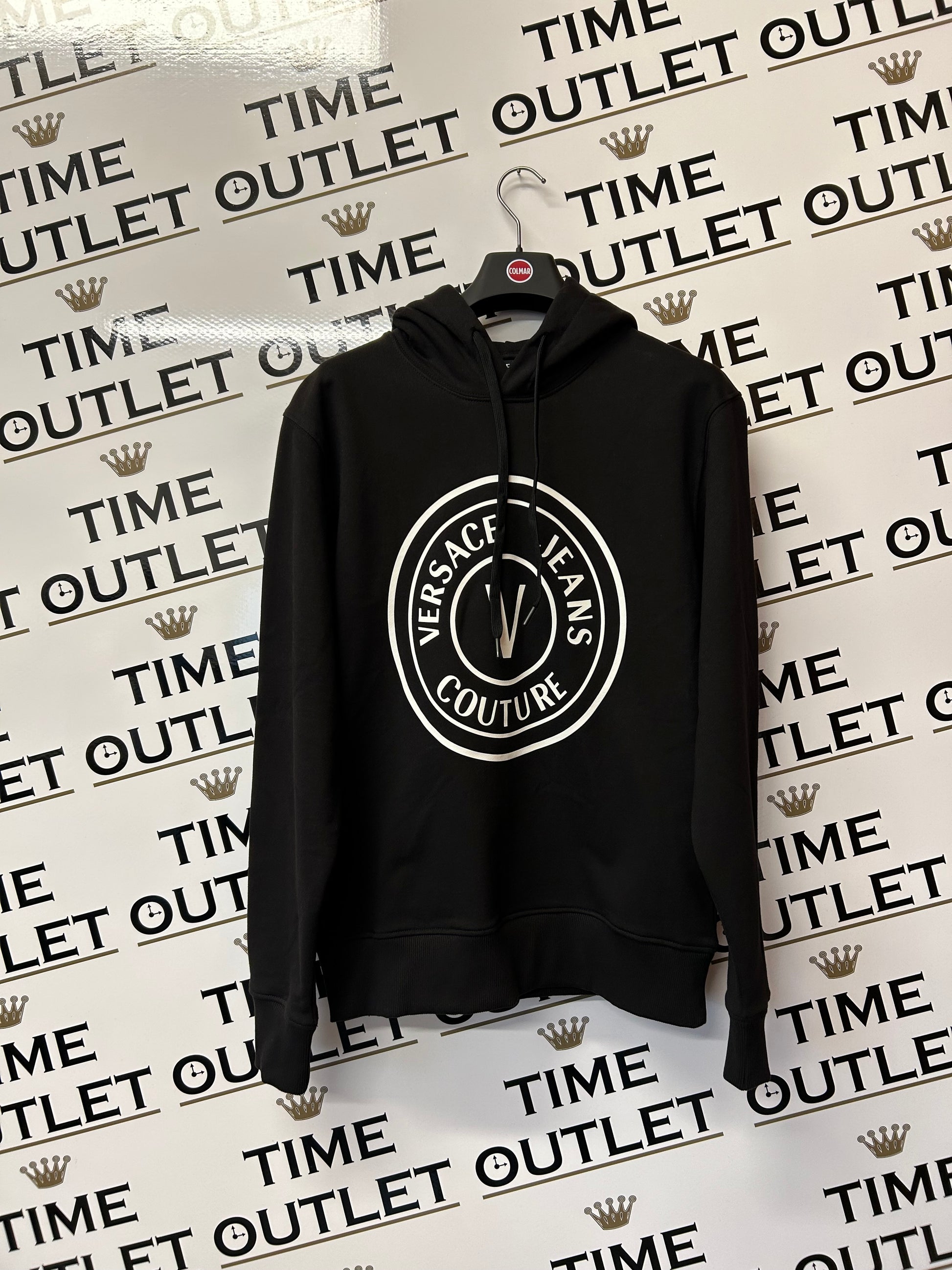Felpa Versace Jeans Couture in cotone Nero. Maxi logo "coin" frontale. Cappuccio con coulisse. Manica lunga. Polsi e fondo a costine. Interno garzato. Vestibilità regolare.