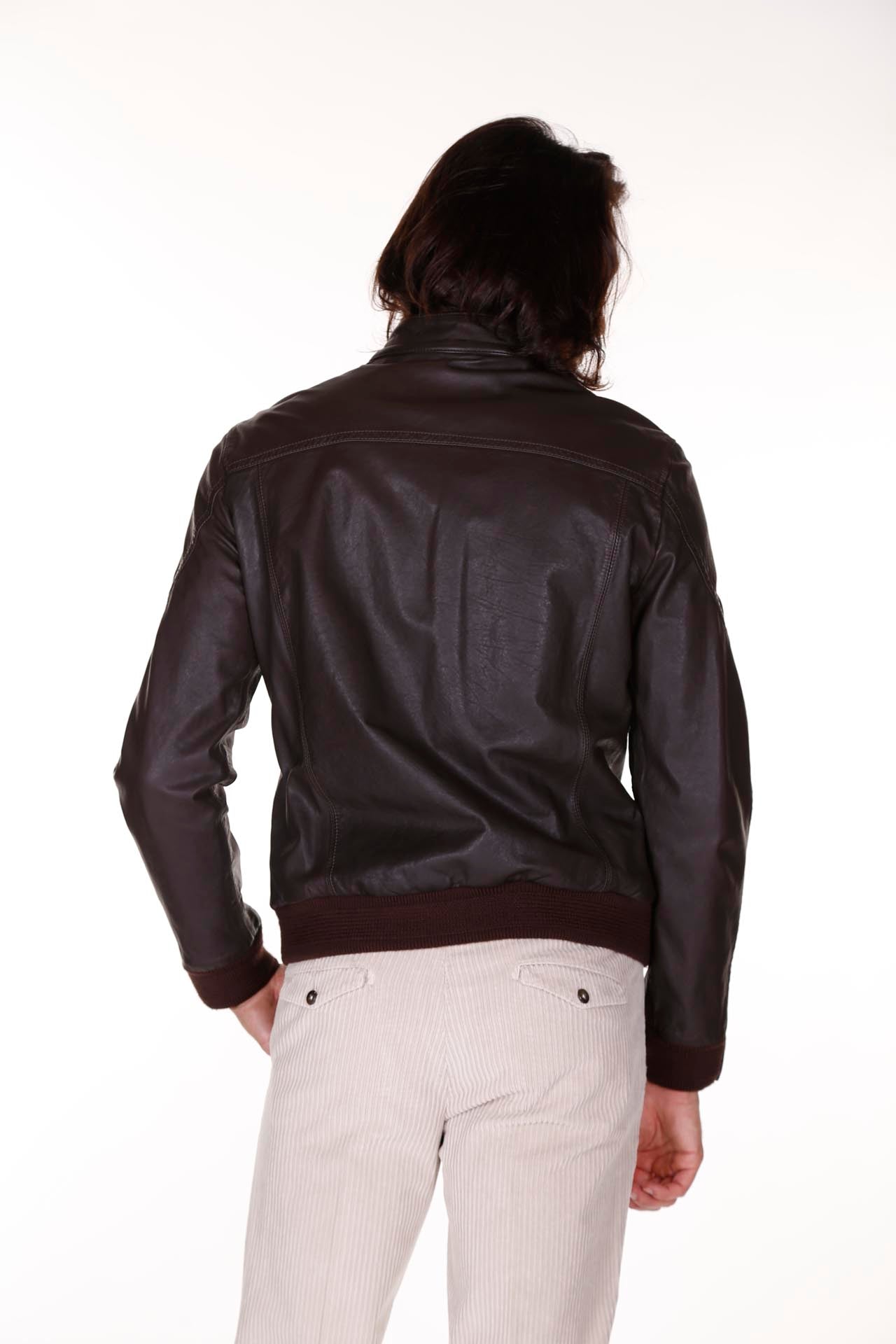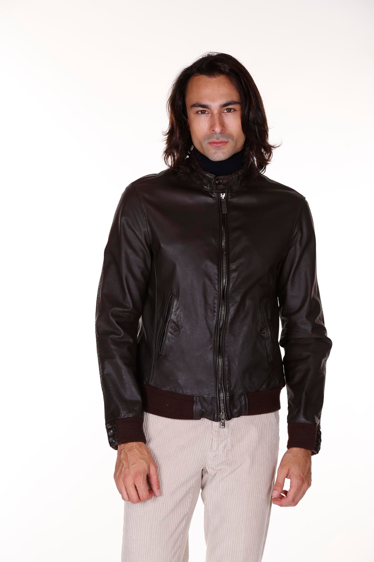 Bomberino in pelle, fondo polsini e collo in lana, chiusura frontale con cerniera e bottoni, foderato, una tasca interna.